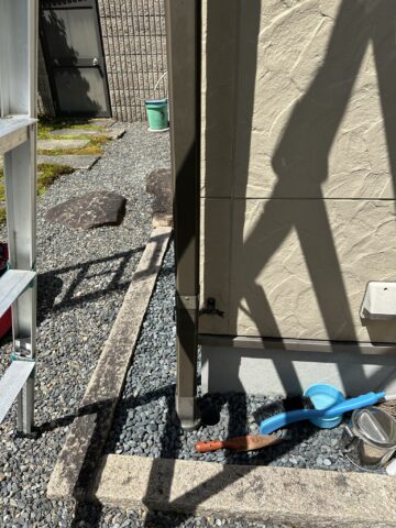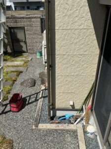建物の外側から見たところ、雨樋が片側に傾いており、しっかり固定されていない状態とのことで、雨水の流れにも影響が出ているのではないかと心配されていました。