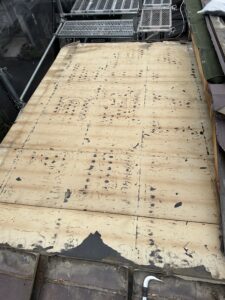 大屋根部分は新しい下地とルーフィングシートを敷いていきます。