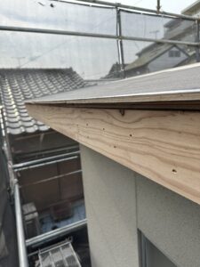 また、屋根本体だけでなく、鼻先や破風部分についても板金で巻くことで、雨水の侵入を防ぎながら長持ちする仕様に仕上げています。