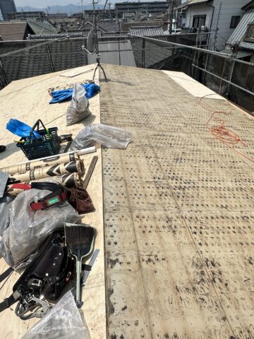 下地の状態を確認し、必要な補修を行いながら新しい屋根の施工を進めていきます。