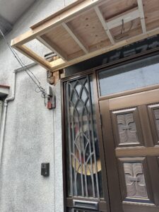 まずは既存の庇を撤去した後、大工工事を行い、新たに庇を造作していきます。